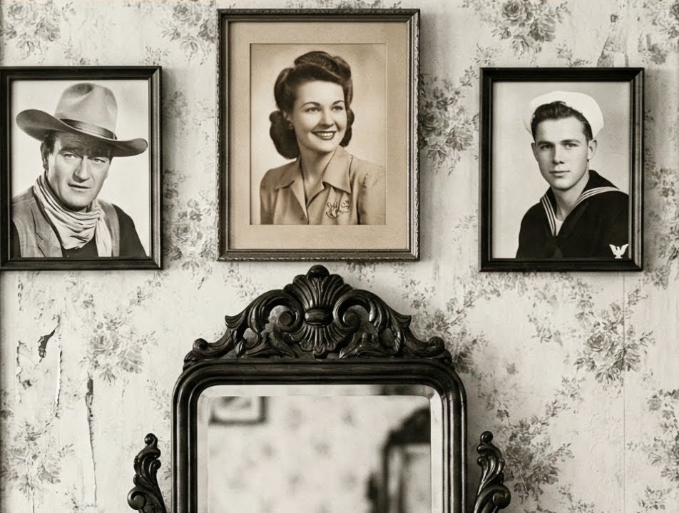 A door opened, and a woman entered from the back of the house—early 20s, tired eyes, work clothes, simple blouse and slacks, hair pulled back. She stopped when she saw Wayne, recognition and surprise crossing her face. “You’re John Wayne.” “Yes, ma’am.” “I’m Susan, Robert’s sister.” Wayne stood, shook her hand, and saw the resemblance immediately—same eyes, same shape of the face. “I’m sorry about your brother.” “Thank you.” She glanced toward the kitchen. “Mom didn’t tell me you were coming.” “She didn’t know. I should have called first.” “No, this is kind.”