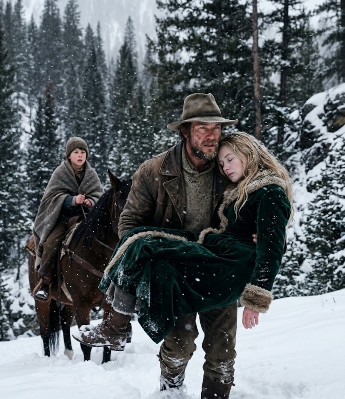 He had lived long enough with hard seasons to understand that nature never bargains. It only decides. And on that particular evening, as snow drove sideways across the narrow trail and the wind screamed between the pines, Jesse understood one thing clearly: