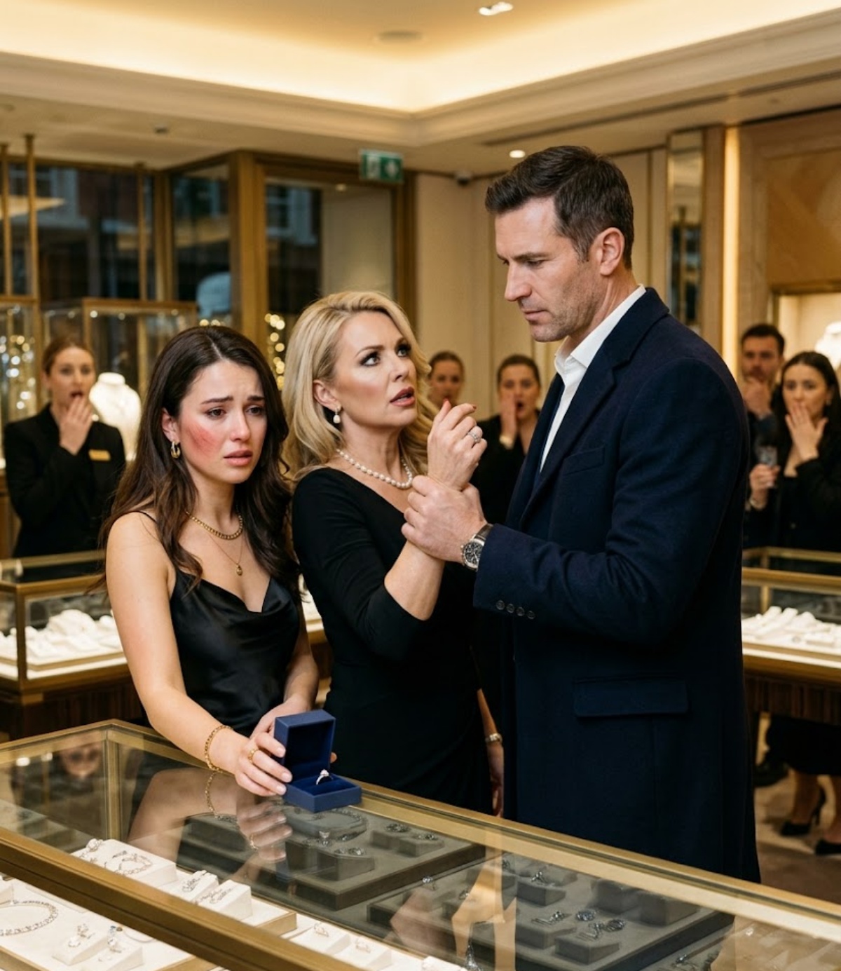 The sound cracked through the jewelry store so sharply that a tray of rings rattled against the glass. Someone near the bridal cases gasped. A man browsing watches lifted his head.
