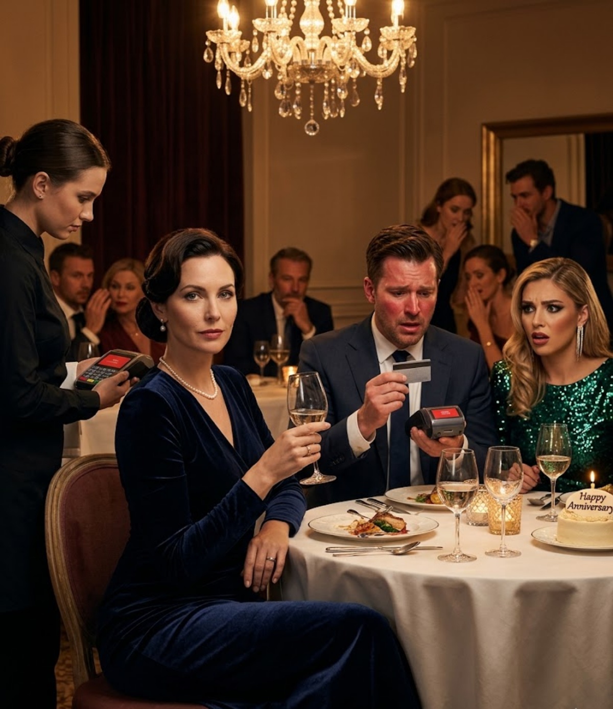 Tonight was supposed to be another version of that same story. Marissa’s anniversary dinner, a carefully staged event where she could show off—not just her lifestyle, but her control over the people around her. The choice of restaurant wasn’t accidental. Everything about it screamed exclusivity. The lighting was soft and golden, reflecting off polished marble and crystal glassware. The staff moved with quiet precision, trained to make every guest feel important.