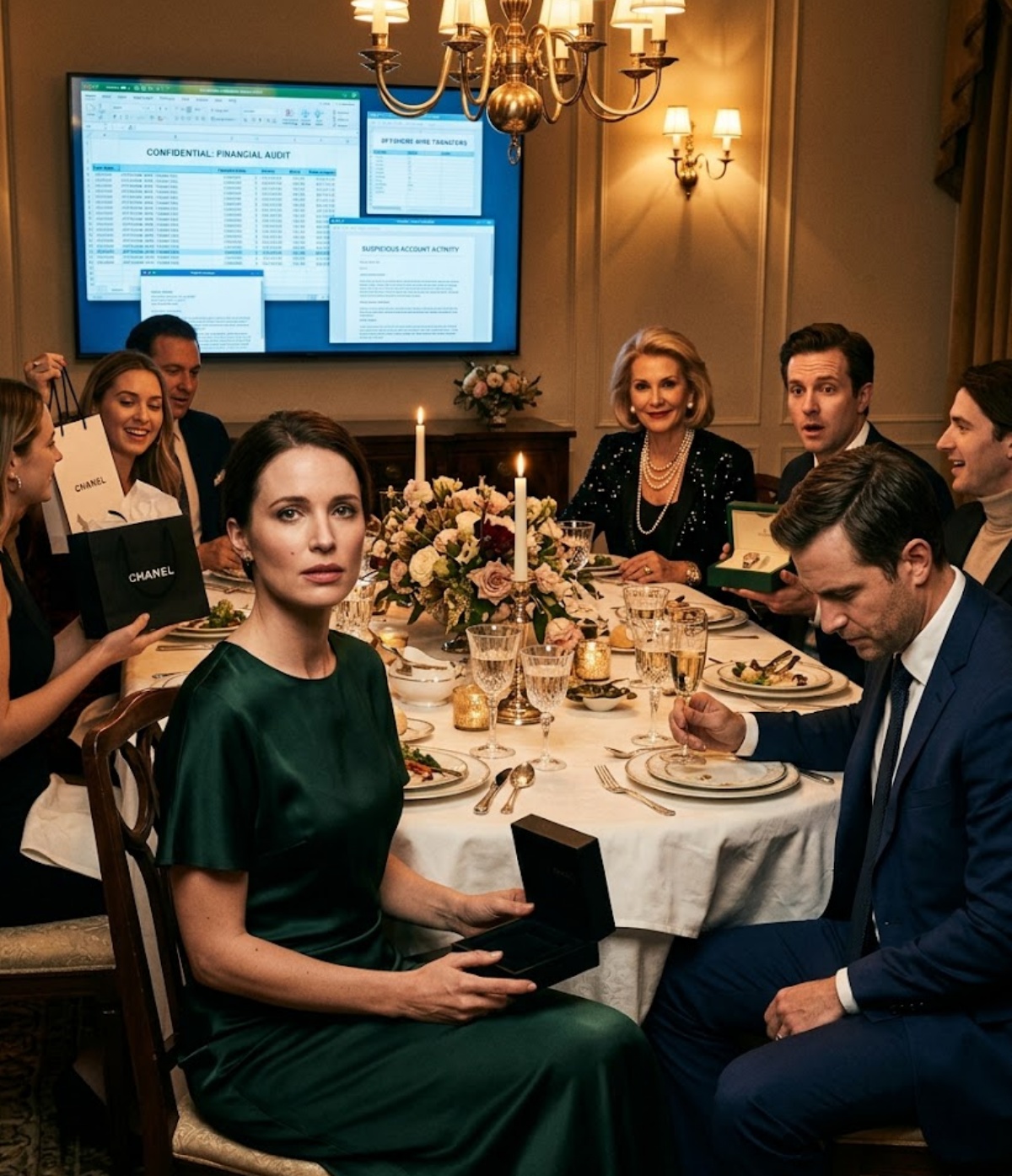 He just stared into his champagne glass like there was something at the bottom of it more urgent than his wife being humiliated in front of his entire family.