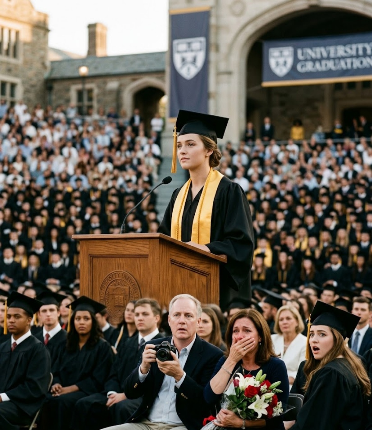 They saw me under stadium lights, wearing a gold valedictorian sash, standing at a podium in front of 3,000 people, while my name echoed through Whitmore University’s commencement ceremony.