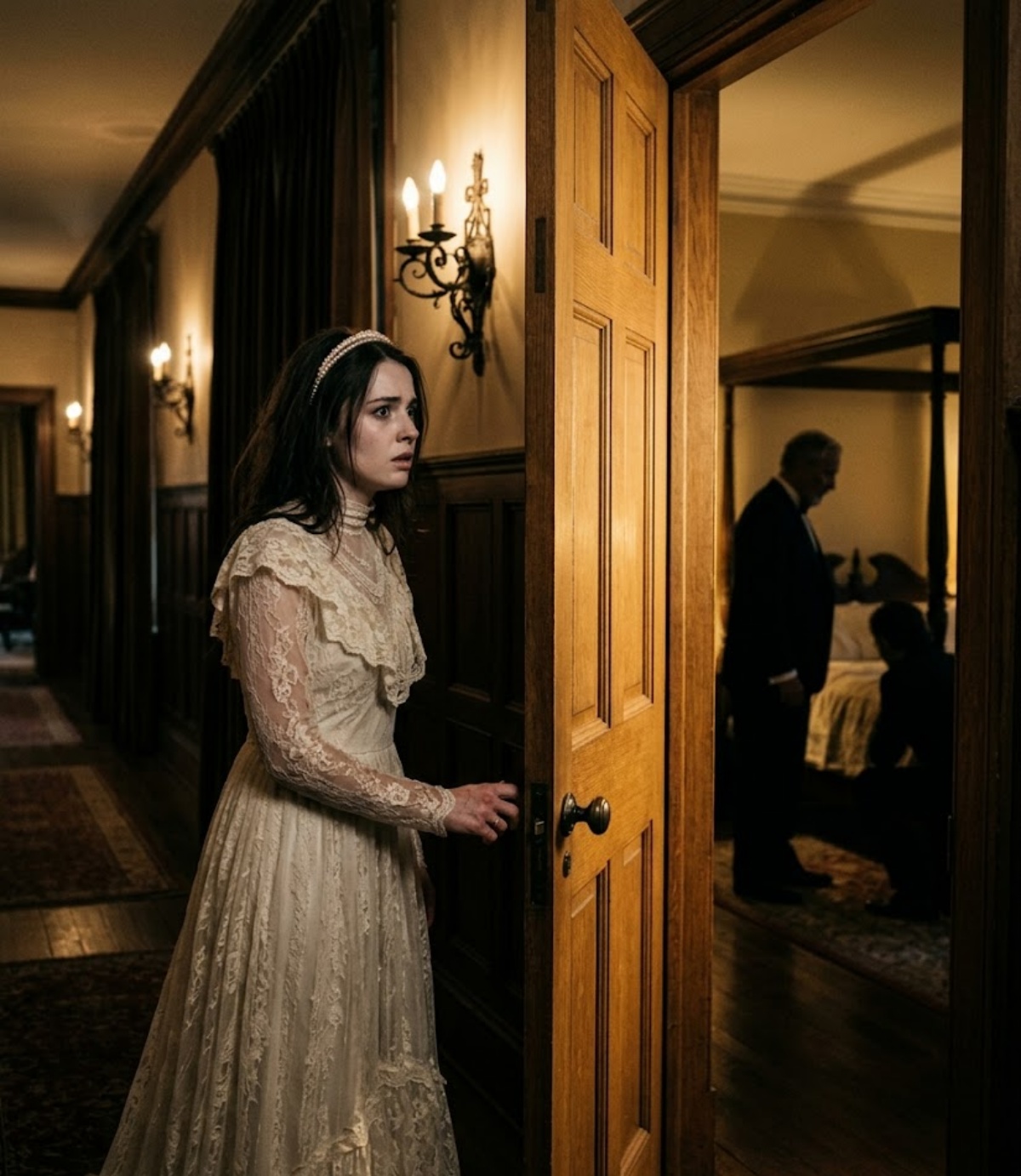 ON OUR WEDDING NIGHT, MY HUSBAND SAID HE WAS “COMPLETELY EXHAUSTED”… HOURS LATER, I HEARD A WOMAN CRYING IN HIS FATHER’S ROOM