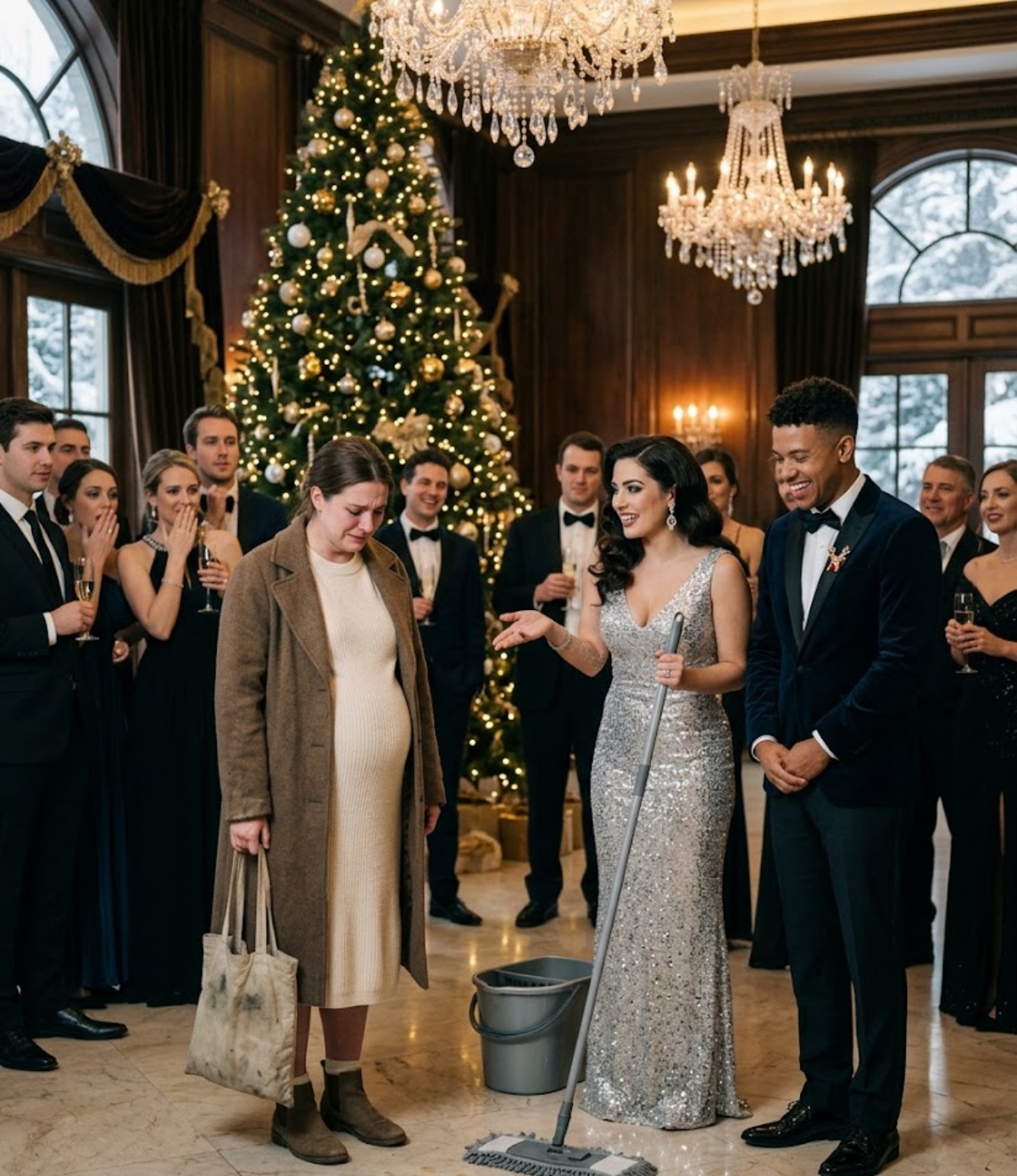 That was me, standing in the middle of my husband’s office Christmas gala, six months pregnant, holding a mop his mistress had just placed in my hands like I was hired help.