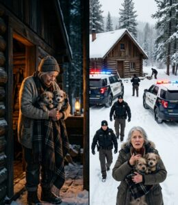 AN 80-YEAR-OLD WOMAN TOOK IN TWO FREEZING PUPPIES FOR ONE NIGHT… BY MORNING, POLICE HAD SURROUNDED HER CABIN