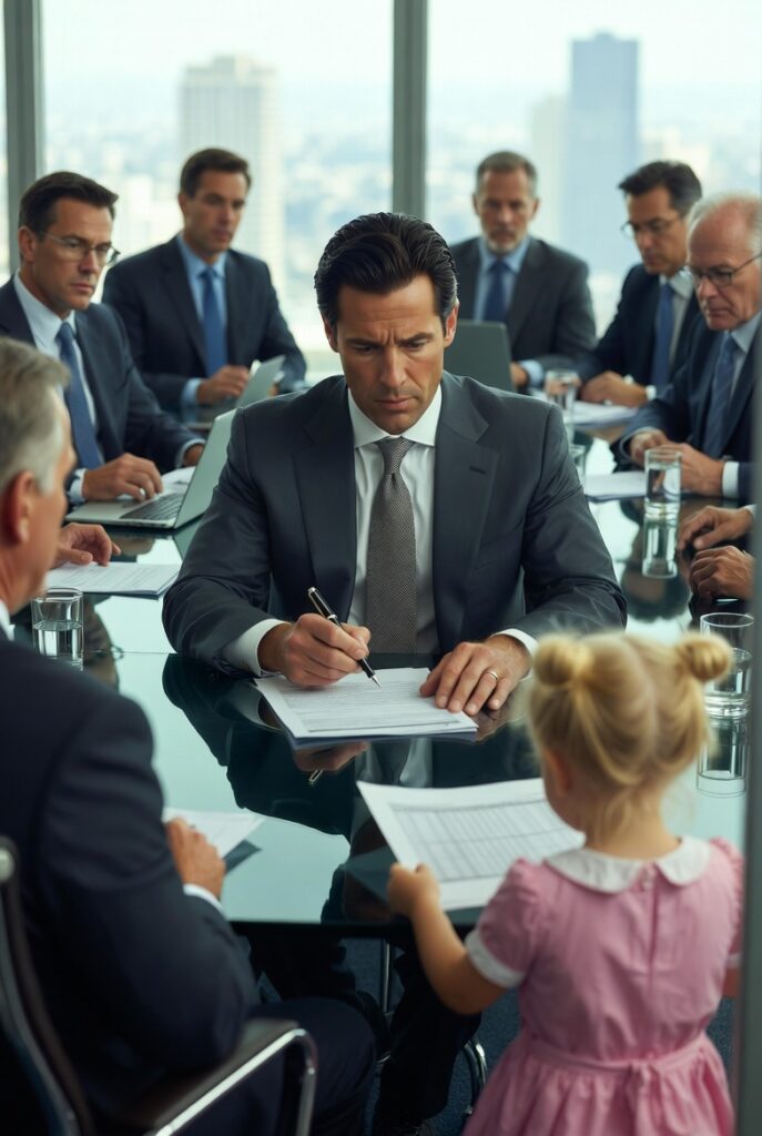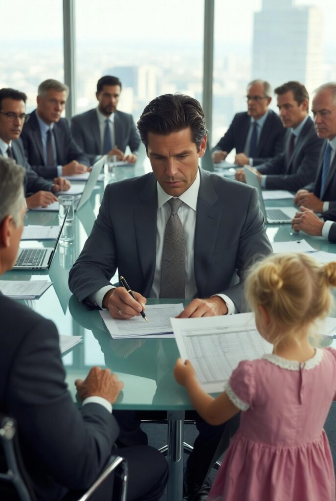 He sat at the head of the long glass table in a charcoal suit, white shirt, and gray tie, all chosen by instinct from a life that had long ago taught him how to look composed when he felt anything but. Around him sat lawyers, accountants, board members, and senior executives, all performing their own versions of concern.