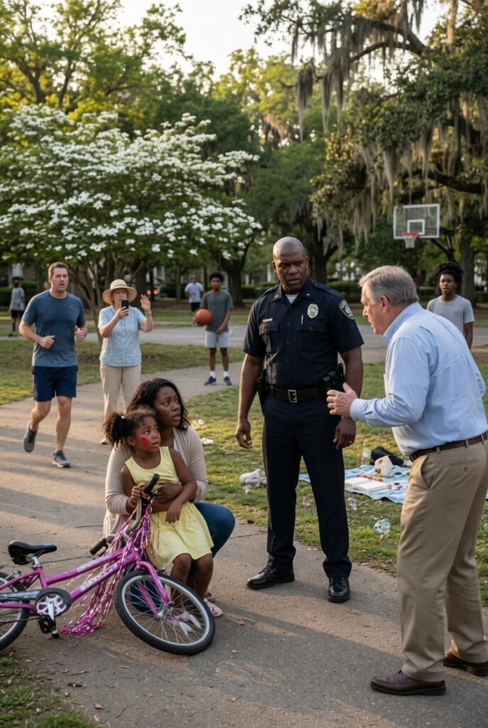 She had bright brown eyes, a gap-toothed smile, and the kind of joy that makes strangers smile back without thinking. She wore a pastel yellow sundress, white socks, and sneakers already marked with playground dust. Her curly hair was tied into two bouncing puffs, and she was riding her favorite pink bicycle—the one with glitter streamers on the handlebars that flashed every time she turned.