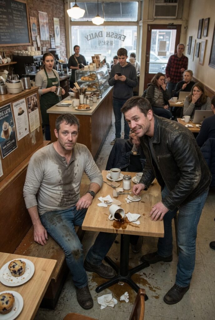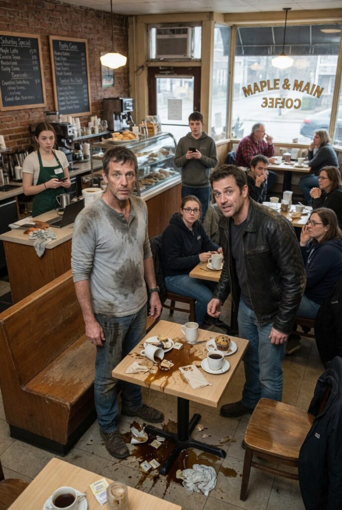 The younger officer was already placing Miller in the back of the cruiser outside. Not cuffed, just controlled. The flashing lights washed blue and red over the café windows for a few more seconds, then dimmed as the cars pulled away.