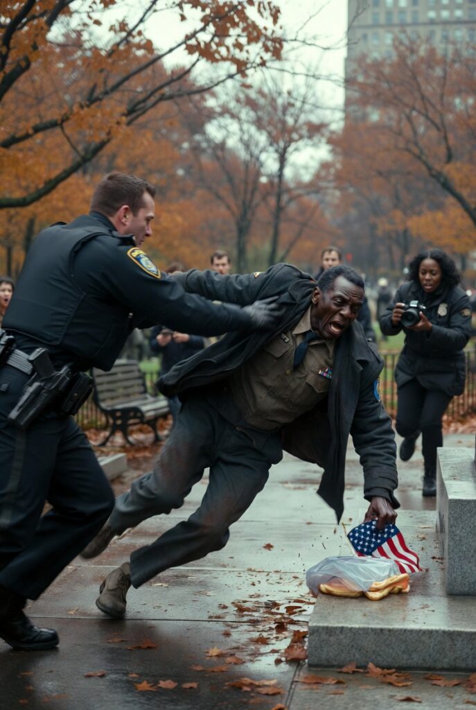 “Put it down,” he barked, pointing at the little flag as if patriotism itself had somehow become evidence. The photograph. The medals. The old man’s coat. Everything that made Henry human was being compressed into a threat profile by a man too conditioned to see dignity in Black skin, especially when that dignity refused to tremble.