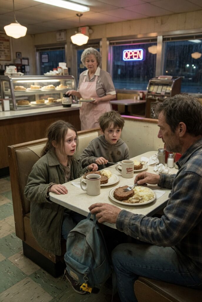 Her tone wasn’t cruel. Just cautious. The tone of a woman who had worked too many years in a diner near a highway and knew the difference between hunger and trouble, and how often the two arrived together.