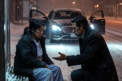SHE WAS FREEZING TO DEATH AT A BUS STOP… THEN A STRANGER IN A BLACK MERCEDES SAID 6 WORDS THAT CHANGED EVERYTHING
