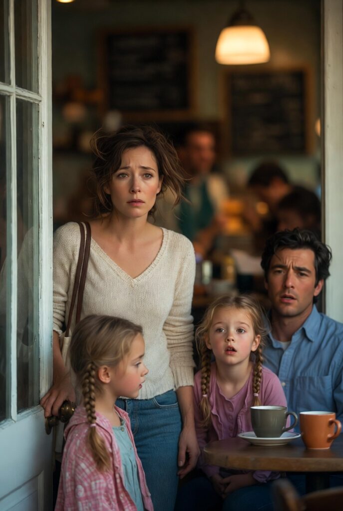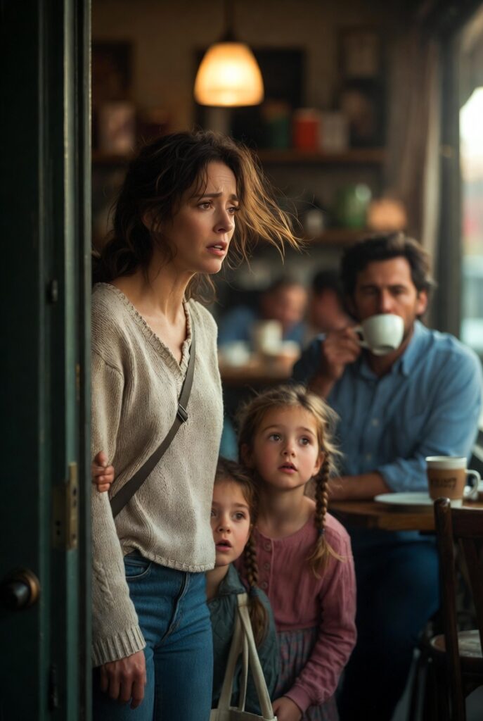 Sometimes love does not enter softly. It bursts through a cafe door with three identical little girls and an apology on its lips.