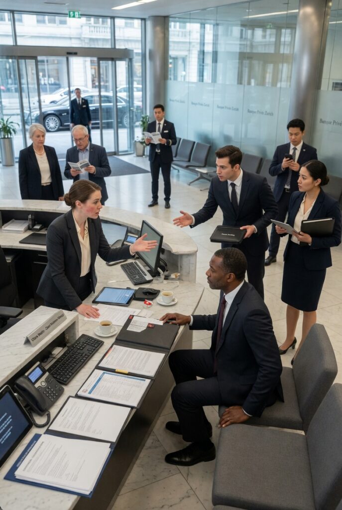 At 9:15 on a crisp Zurich morning, the revolving doors of Zurich Central Bank turned with their usual polished elegance, welcoming in a stream of clients who looked exactly like the institution preferred them to look.