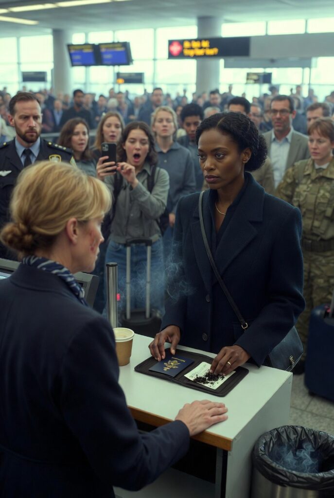 She stood there in uniform, in an international airport, holding flame to a traveler’s passport while strangers watched and recorded and argued and hesitated, and there was something almost surreal in the confidence with which she did it. Not wild confidence. Not panicked confidence. Worse. Administrative confidence. The kind that hides behind counters and procedures and years of never being stopped when it should have been.