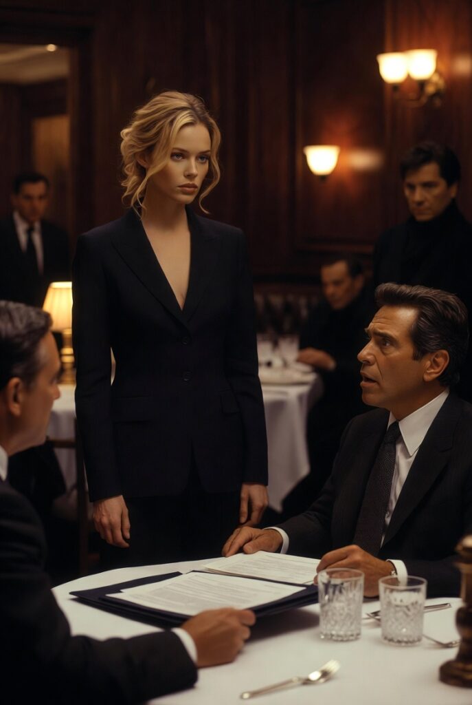 To the guests, she was simply Elena, one of the senior waitresses. Calm, competent, impossible to rattle. She had a way of noticing everything without seeming to look. A water glass was refilled before it was empty. A chair was adjusted before a customer asked. A forgotten napkin appeared the second someone needed one. She wore the standard uniform like everyone else: black bistro apron, pressed white shirt, practical black shoes. Her honey-blonde hair was pulled into a severe bun that emphasized efficiency over vanity. No customer would have looked at her and guessed she was anything other than a hardworking floor manager covering a busy shift.
