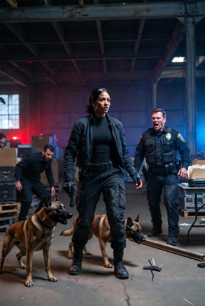 Officer Karna sat in the passenger seat, staring at her boots, then at her face, then at the dogs. His laugh came low and bitter. “Big dogs for a little lady.”