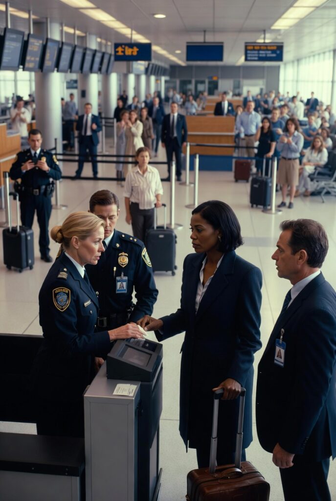 She wore her uniform like armor. Her hair was pulled into a rigid bun. Her mouth rested in the kind of thin, skeptical line that suggested she had long ago mistaken severity for professionalism. She scanned the boarding area with hard little glances, evaluating passengers not just for tickets and passports, but for something else. Something less official. Something people like her rarely admitted out loud.