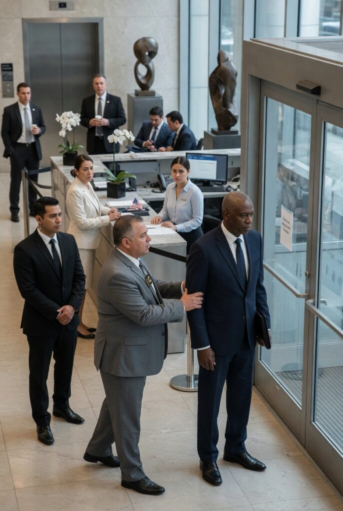Executives crossed the lobby with the practiced speed of people who expected doors to open before they reached them. Receptionists smiled the way luxury hotels teach employees to smile — warm enough to seem welcoming, cold enough to establish rank. Security guards stood near the entrance and elevator bank with the rigid stillness of men trained to spot disruption before it happened.