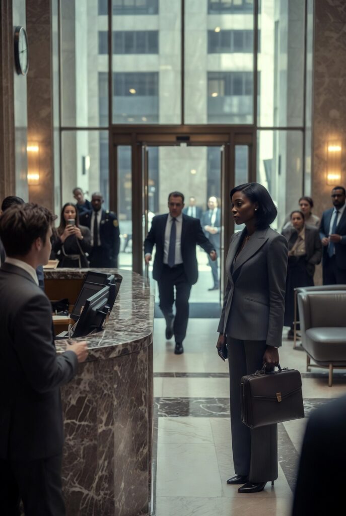 A Black woman, alone, no one accompanying her, no announcement from upstairs, no visible relationship to the executive floor. In his mind, he filled in the rest before she ever reached the desk. She was either lost, confrontational, or about to demand something she had no right to ask for.