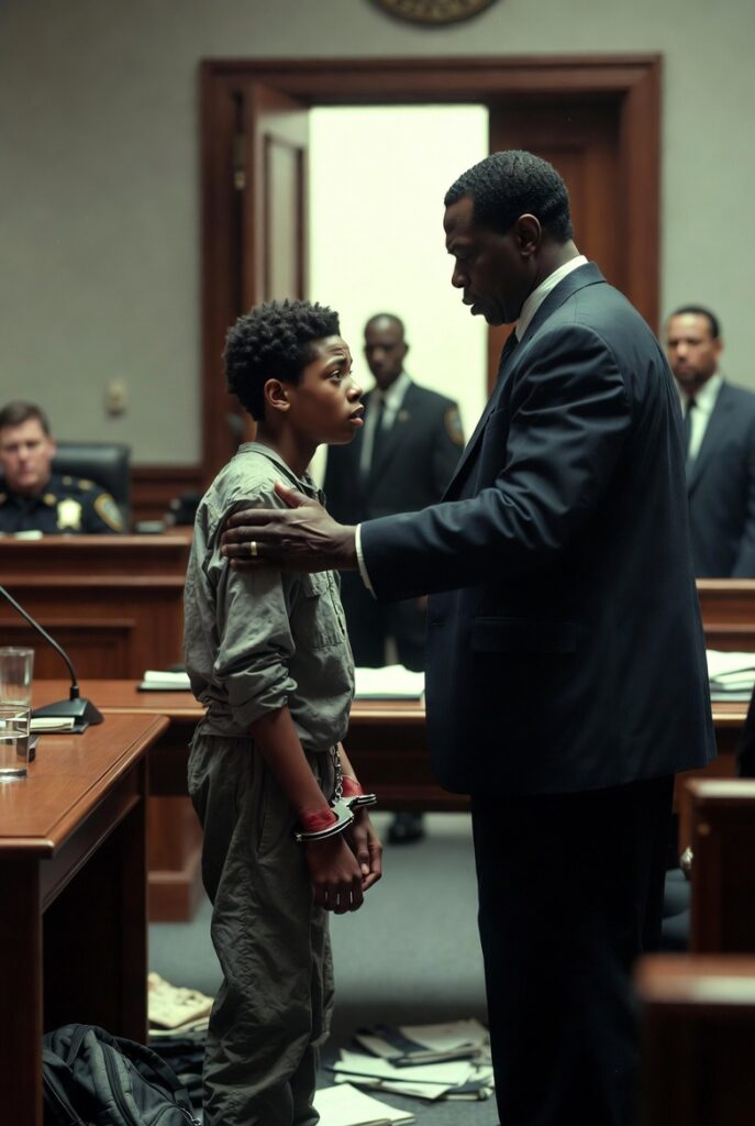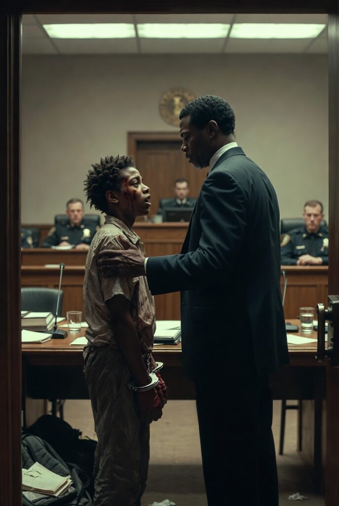 Everything smelled of bleach, stale coffee, and despair that had soaked so deeply into the walls no cleaning product could lift it. Marcus was marched through intake like he was no longer a boy, just another problem being processed. The officer at the desk barely looked at him. Questions were barked without care. Name. Age. Address. Then fingerprints. Mug shot. Pat-down. Inventory. Procedure without humanity.