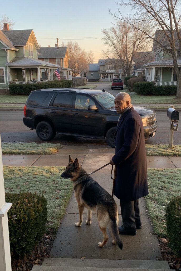 Gregory locked the door behind him and stepped carefully down the porch stairs, Carter already at his left side, body steady, gait smooth, the leash loose but purposeful in Gregory’s weathered hand. The old man’s fingers still bore the scars of decades spent with tools, machinery, and labor. Before retirement, he had worked rail maintenance. Before that, he had flown in Korea. Before that, he had been a boy learning too young that this country could ask everything from a Black man and still hesitate before calling him fully its own.