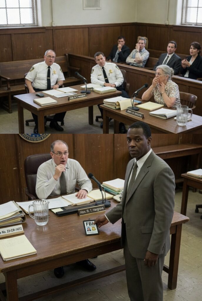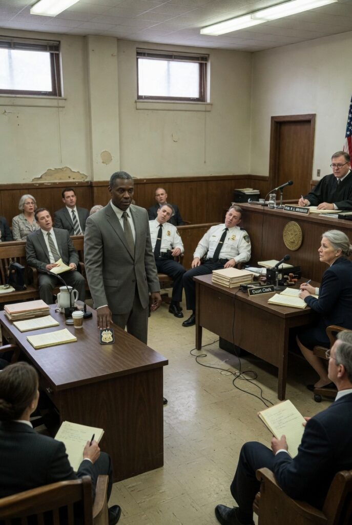 The lights hummed overhead with that pale, tired buzz that makes every face look a little harsher and every silence feel more sterile. The benches were worn smooth by years of waiting and worry. The seal on the wall hung above the judge’s seat like a promise that had been repeated so many times people no longer questioned whether it was still true. Justice. Order. Fairness. Words with heavy coats and weak bones.