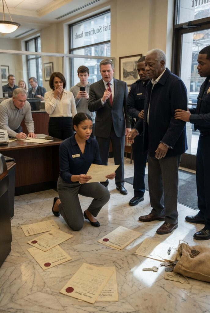 He stepped into the center of the marble lobby and said, in a voice so steady it made a teller pause mid-motion: