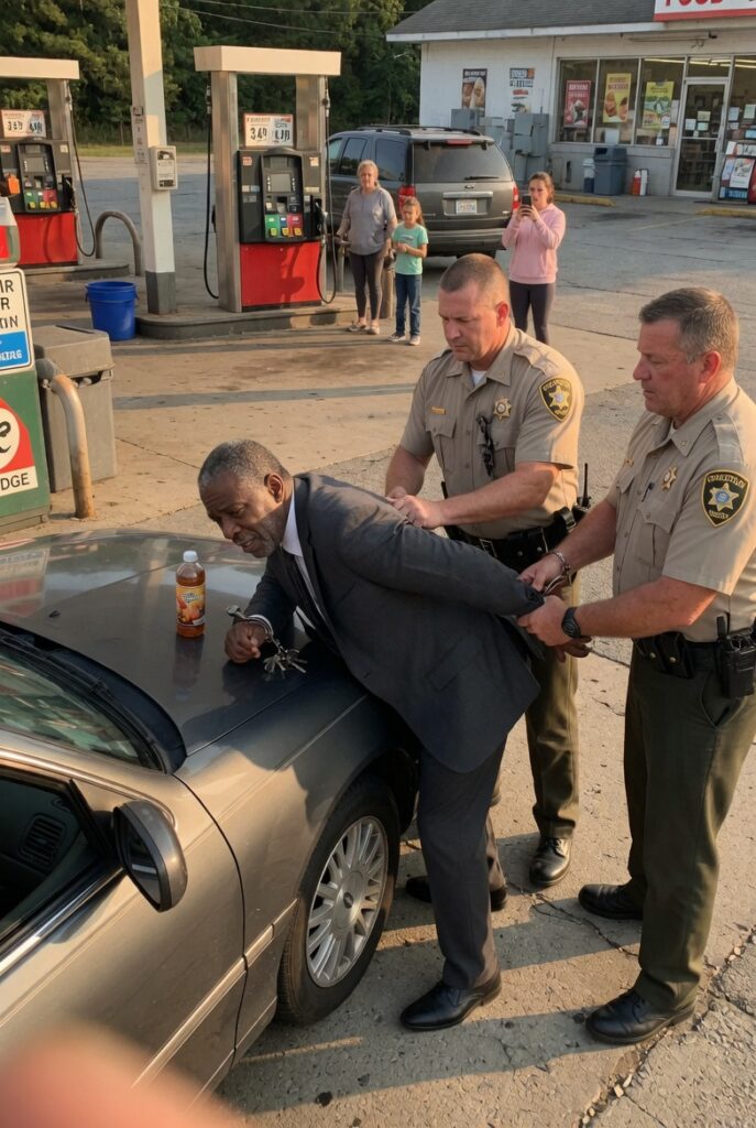 The camera shook slightly as Tanya recorded through the distance and confusion. But what it captured was enough: a dignified Black man in a suit bent over the hood of his own car, wrists cuffed, one side of his face tense with pain, blood beginning to trickle from where the metal had cut into his skin.