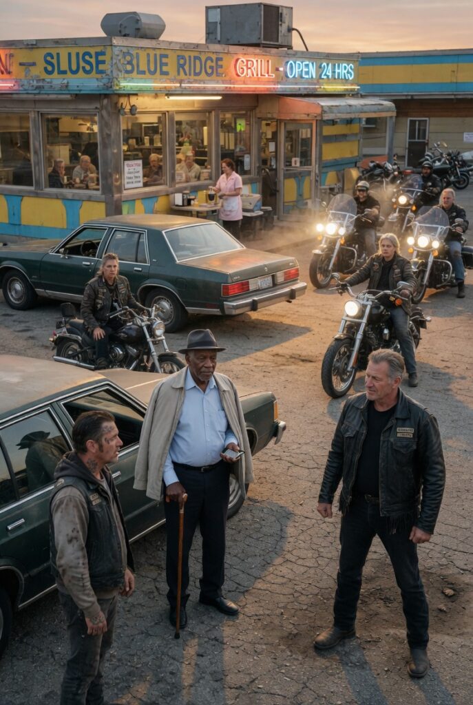 The late afternoon sun poured over Asheville like warm honey, coating the diner windows in gold and making the old chrome trim of the Redwood Cafe glow like something out of another decade. It was the kind of roadside place people trusted without thinking. Truckers stopped there because the coffee was strong. Locals stopped there because the pie tasted like memory. Families stopped there because the booths were familiar, the waitresses knew your name, and nothing dramatic was supposed to happen in a place like that.