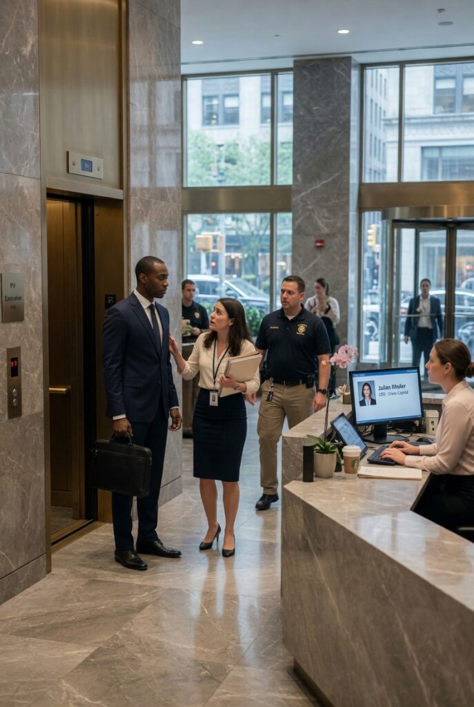 Its headquarters rose above Midtown like a monument to selective belonging — all steel, stone, and confidence. From the outside, it looked like one of those places where every detail had been curated to communicate power. Inside, it felt even more deliberate. Floors that gleamed. Security stations positioned like gatekeepers. Receptionists trained to smile without warmth. People walking quickly, dressed sharply, speaking in low tones as if the entire building had agreed that urgency itself was a status symbol.
