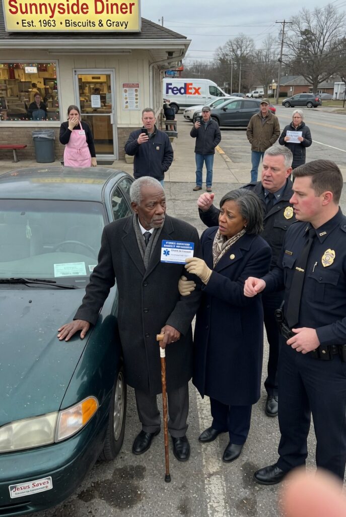 Miriam stepped out first and came around the car to help him. Elias adjusted the scarf at his neck and accepted her arm without protest. Age had taught him that pride and foolishness often wore the same face. He moved carefully, cane tapping the pavement once before they reached the diner door.