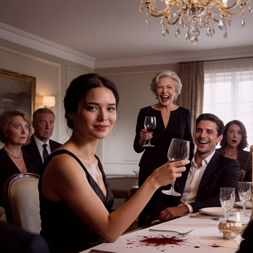 She studied me for less than ten seconds before lifting her glass of red wine and throwing it straight into my face. The room erupted in shocked gasps, but she laughed, loud and satisfied. “Just disinfecting the poor,” she said, as if she’d delivered a clever joke. The wine dripped from my hair onto the tablecloth, staining it deep crimson.