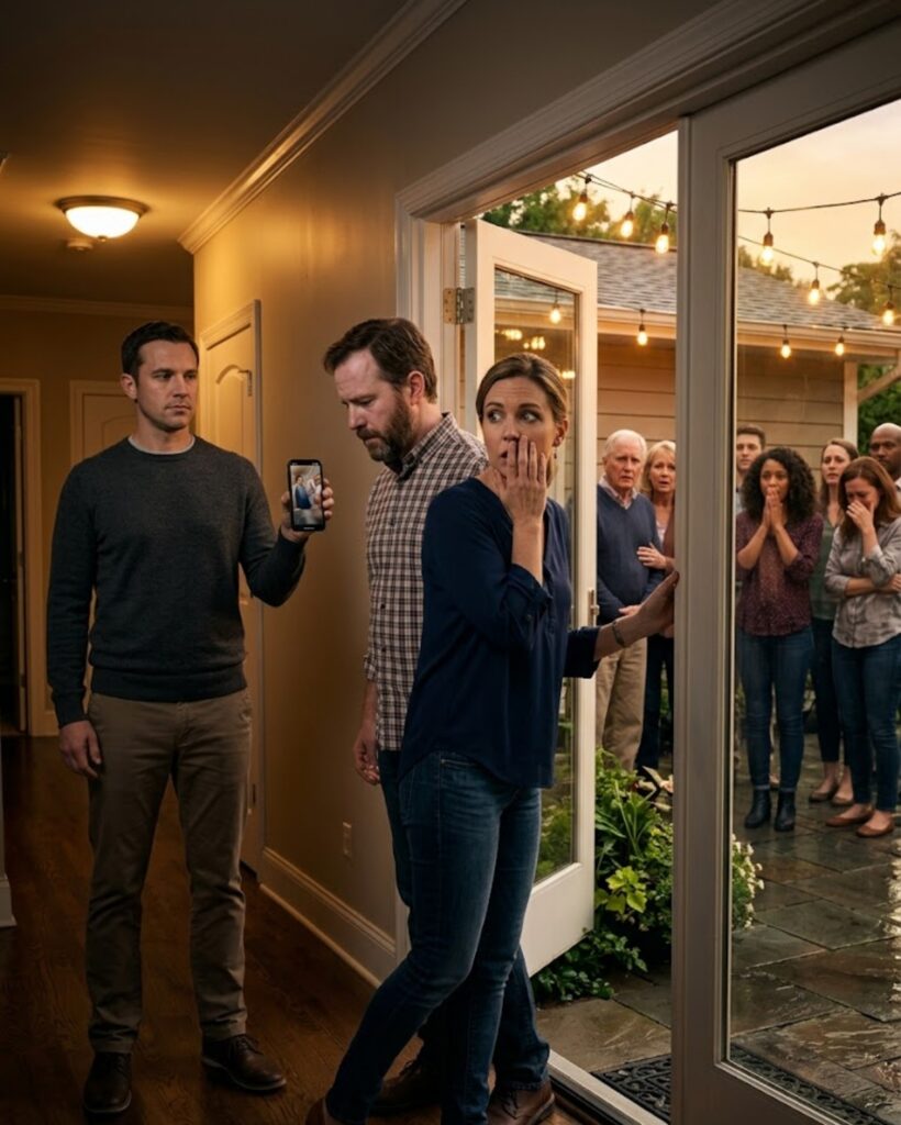 From there, he could see the front door, part of the living room, and the reflection of the backyard lights in the glass. He held his phone in his hand, camera ready, more from instinct than need now. The guests waited behind the closed glass door, unaware that the surprise they imagined had already been replaced by something far more unforgettable.