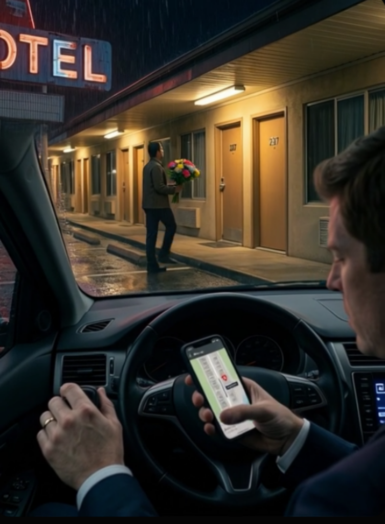 I did not go up to room 237 after the flowers arrived. I didn’t need to. That surprises people when they hear the story, because most imagine rage as the natural next step, some cinematic confrontation full of screaming, fists, shattered glass, and a motel manager hovering in the background wondering whether to call the police. But anger was no longer the most useful thing in me by then. Once you have enough proof to stop doubting yourself, adrenaline becomes less valuable than control. I had seen Lauren’s car. I had seen the Audi. I had seen her face when she read the note. And more importantly, I had seen the man pull her back into the room, which told me everything I needed to know about the power balance inside that affair. Whoever he was, he thought the crisis was still manageable. That meant the most effective thing I could do was let him keep thinking that for a little longer.