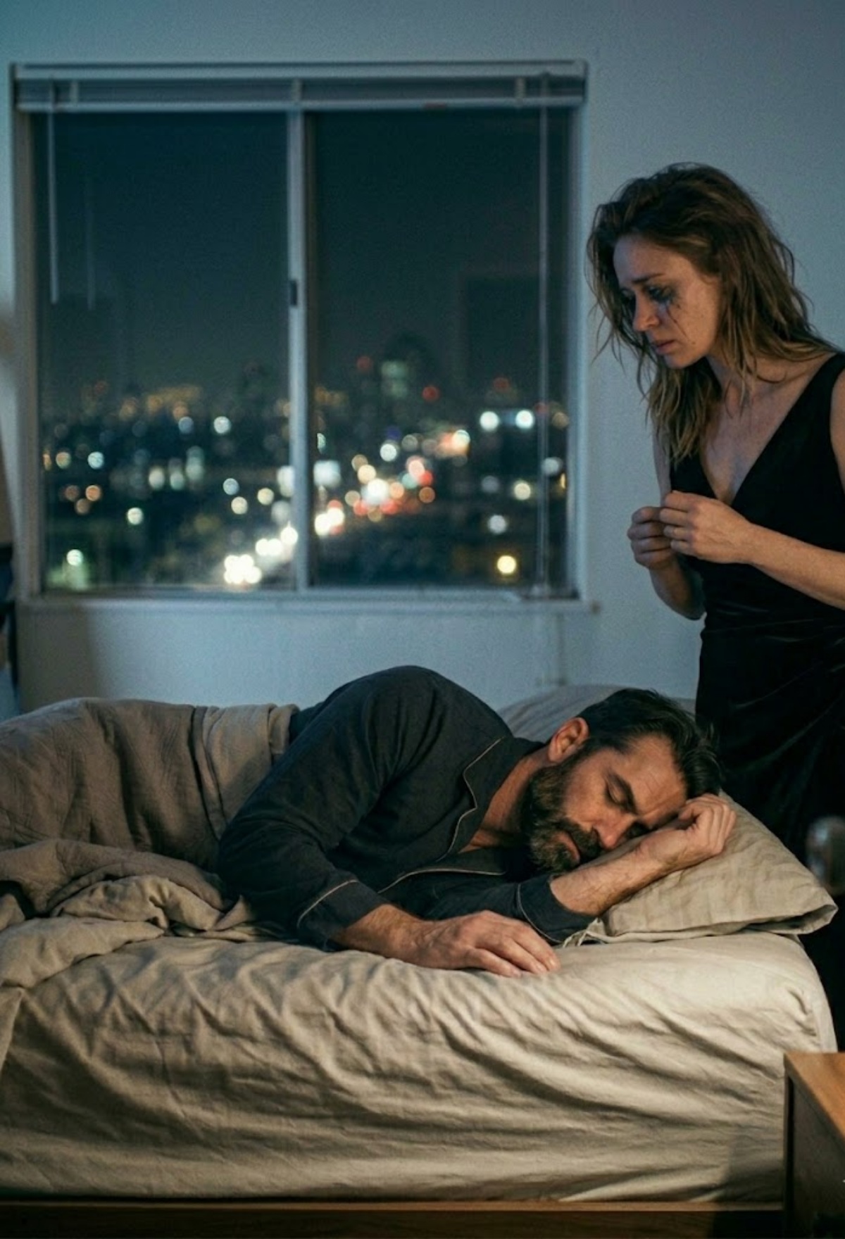 The digital clock on my nightstand glowed 4:07 in thin red lines against the dark. Our bedroom was lit only by the slatted light of the city outside, Los Angeles still awake beneath the hills, headlights moving in distant quiet streams beyond the glass. I lay on my back with my breathing flattened out, my phone loose in one hand under the comforter, staring at the ceiling fan’s shadow turning slowly overhead. Sarah pushed open the bedroom door a fraction, enough to slip through.