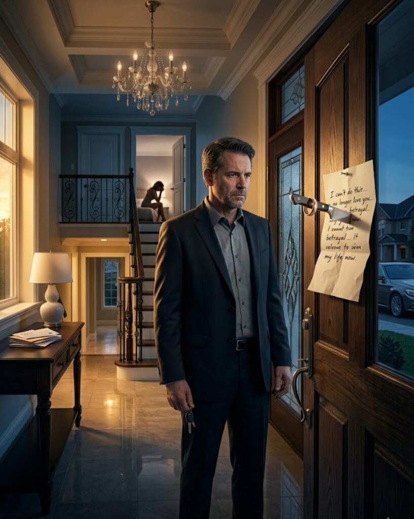 I wrote the note by hand because some things deserve ink. I told Polly our marriage was over in every way that mattered, regardless of what the law still said. I told her the master bedroom was mine and would remain mine. I told her she was now free, since freedom was apparently what she wanted badly enough to humiliate me for. Then I placed my wedding ring on the page and drove one of my collector knives straight through both into the front door.