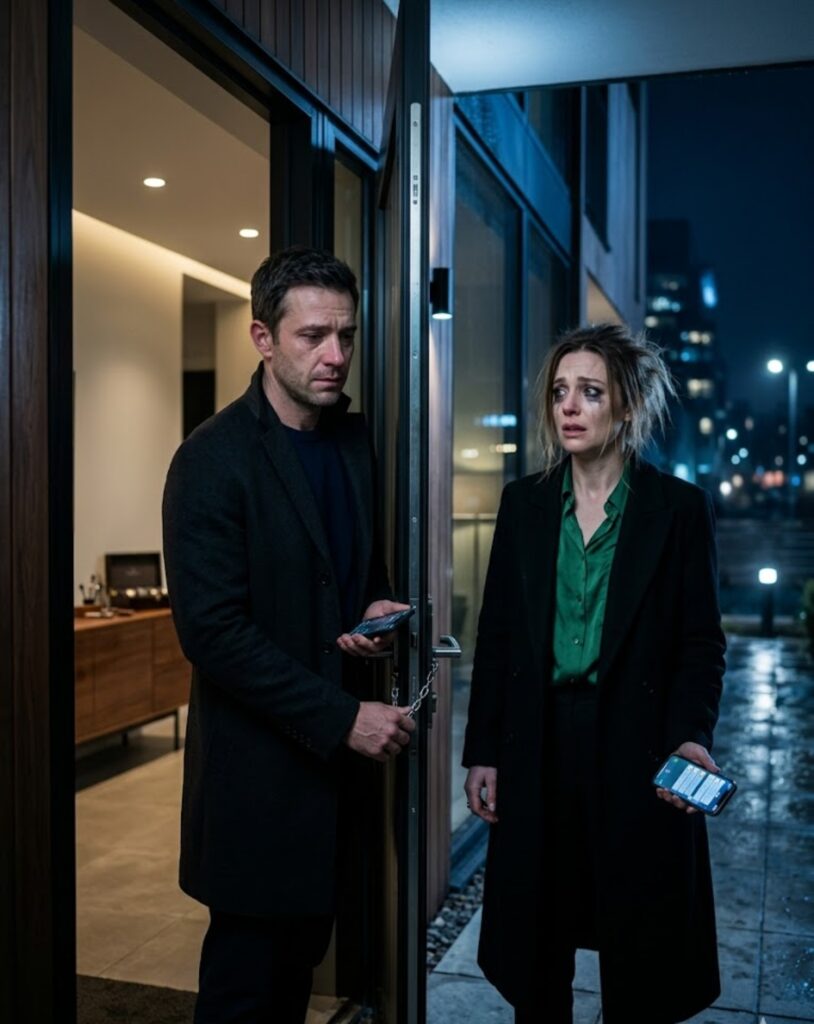 The thing about panic is that it changes a person’s silhouette before it changes their voice. Through the side window I could see Kira on the porch, hair blown loose from the drive, one hand on the doorframe, the other clutching her phone like she might still negotiate with reality if she held the right device tightly enough. She had gotten there fast—faster than the speed limits, faster than dignity, faster than whatever lie she might have tried to compose on the way. When I opened the door, I kept the chain on. That detail mattered to me more than it should have. Boundaries become ceremonial after betrayal. You need physical versions of what should have existed emotionally long before.