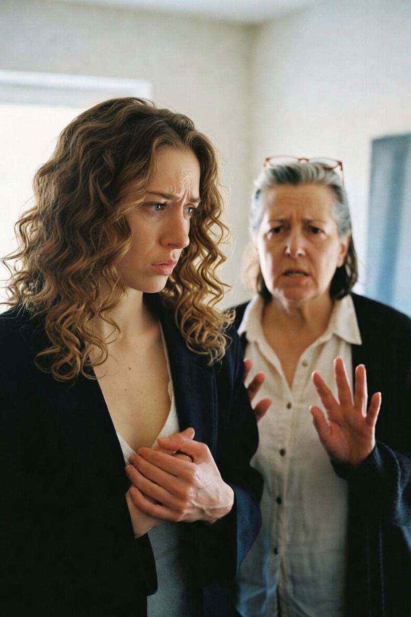 Ten minutes later she was standing in the building lobby wearing a cream blouse, her hair pinned back, posture perfect, expression unreadable. She didn’t waste time. She looked at me once and asked the question.