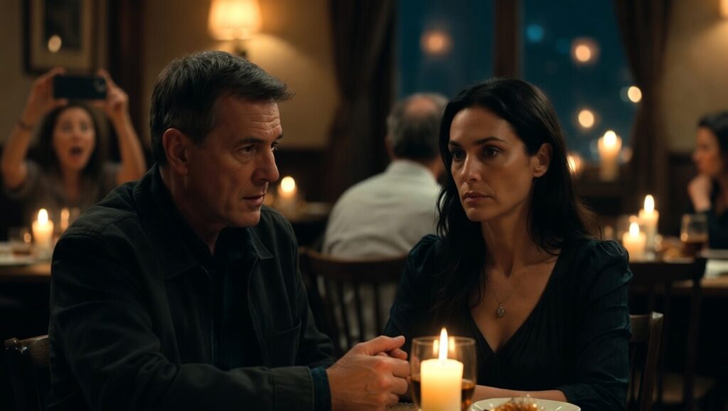 Every second stretched. Every glance at my phone felt heavier than the last. The room around us continued existing in its soft romantic glow, but for me the restaurant had transformed completely. It no longer felt elegant or warm. It felt like a stage before an explosion. Every laugh from another table sounded misplaced. Every clink of glass felt surreal.