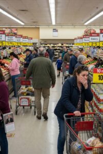Behind Elizabeth, someone’s trolley squeaked. Somewhere a child was crying because he had been denied biscuits. The ordinary life of the store kept moving around them, obscene in its normality.