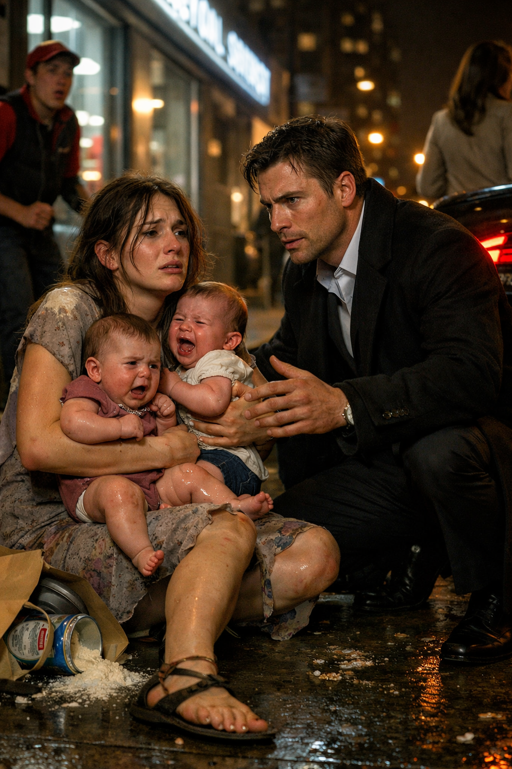 The sound of breaking glass ricocheted through the marble entryway just as Rose’s knees hit the pavement outside the hospital supply store. One second she had been standing beneath the washed-out glare of a streetlamp with two crying babies pressed against her chest, and the next the world had tilted hard to one side. A delivery boy cursed because she had dropped a bag of baby formula she could not afford. Someone muttered that she should not bring children out in that heat. A woman in high heels looked straight at Rose, then at the twins, then away with the practiced indifference of someone who had trained herself not to get involved.