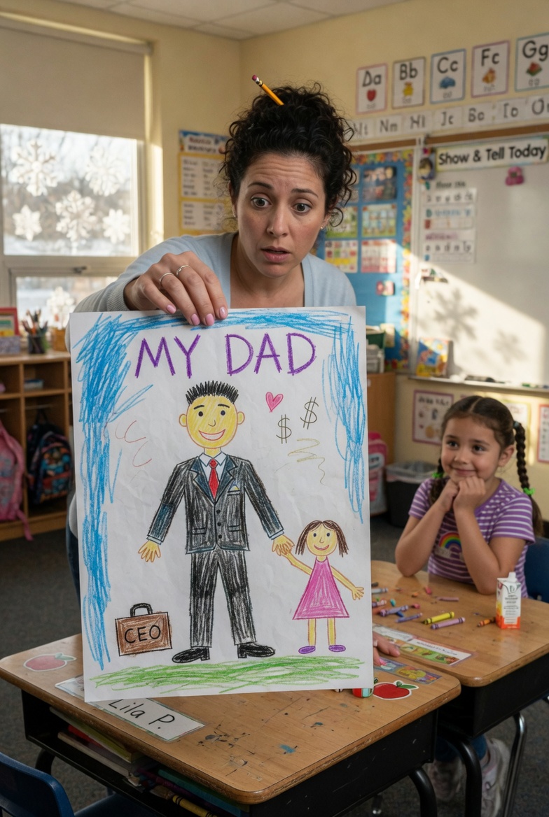The school had invited families to an art morning. Rain tapped softly against the windows again, as if the world appreciated symmetry. Children moved between tables, parents crouched beside too-small chairs, and Miriam Shelby watched from the doorway with eyes bright behind her glasses.