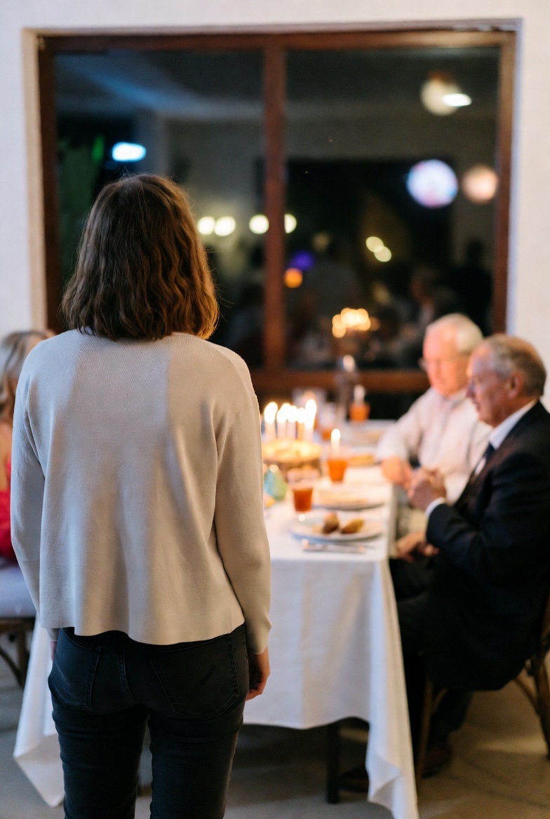 The kitchen suddenly felt too bright. The refrigerator hummed. Somewhere in the backyard, one of the paper streamers tore loose and slapped weakly against the fence. My body went strangely still, the way it used to when I was younger and understood, without needing it explained, that the safest response to humiliation was not to react until the witnesses were gone.