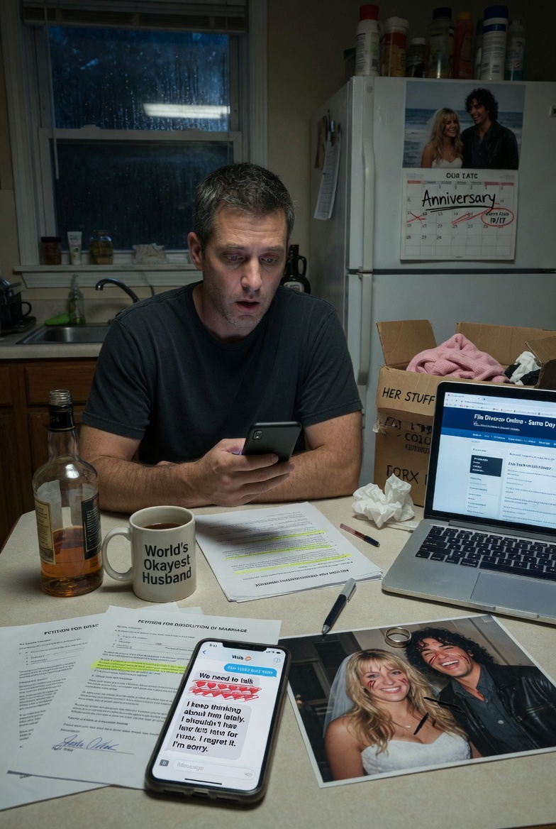 The man leaving coffee on a counter beside divorce papers because ending with cruelty would still have felt like losing.