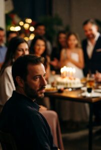 I had just let one of my father’s cousins trap me near the dessert table with a story about property taxes at her new lake house when the first wave hit. It was subtle enough that I almost mistook it for irritation. A mild shift in balance. The sense that my body had become half a second slower than my thoughts. The chandeliers fuzzed at the edges. Her face across from me seemed to recede and flatten at once, like a photograph left too close to steam. I tightened my grip on the glass.