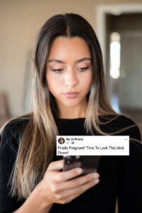 In the comments, someone typed, Therapists don’t usually get their patients pregnant, hun.