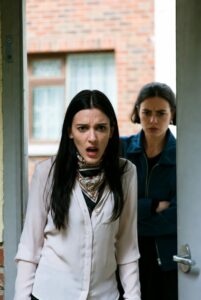 Dr. Sharon Bell stood on the porch in a camel-colored coat with a belt tied in a careful knot at the waist. Her hair was arranged in that expensive, effortless way that always requires more effort than other people are allowed to admit. She wore the perfume Linda had smelled, faintly, in the counseling office once and later dismissed as air freshener. Bergamot. Amber. Something warm underneath that made it sit on the skin like a secret.