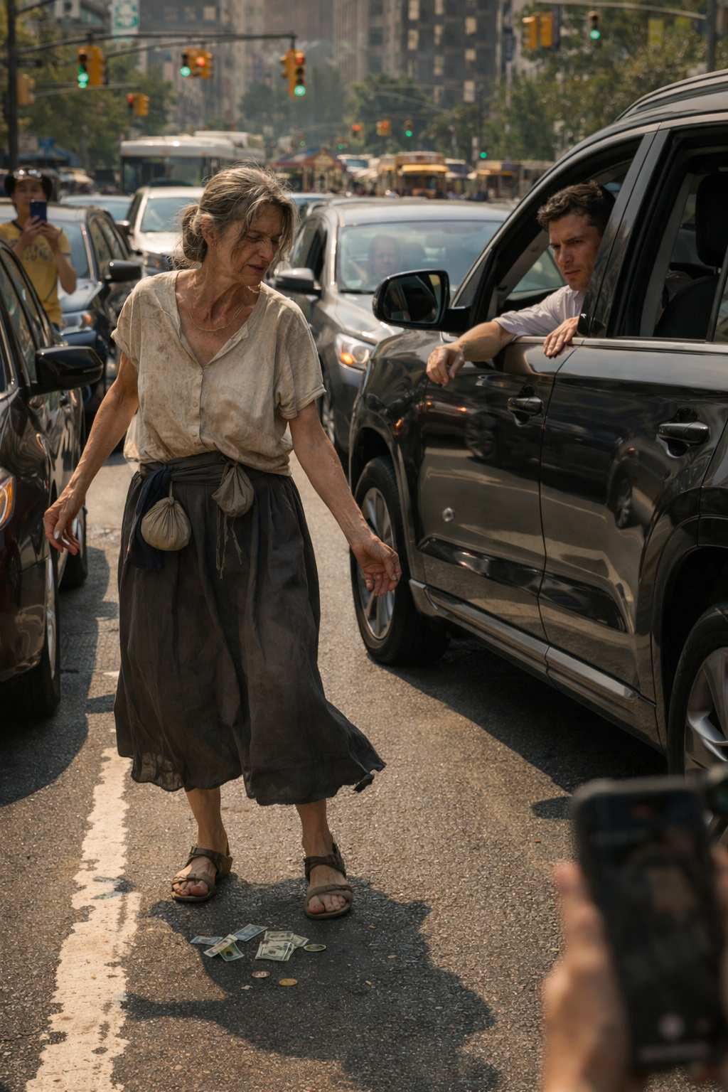 Drivers leaned on their horns harder. A motorcycle swerved around the car. Grace stiffened, clutching the cloth purse at her waist. Her first thought was fear. Her second was shame. She knew what she looked like from a distance: an old woman with dust on her hem, sweat on her neck, and the last scraps of dignity balanced like glass in trembling hands.