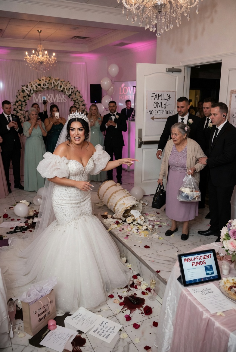 Evelyn crossed the ballroom under golden light that made everything look softer than it was. She passed the mirrored columns, the flower towers, the place cards written in sloping calligraphy. Near the doors, she paused once, very briefly, because the heel of her right shoe had slipped on the marble and sent a hard bright pain up her calf. Then she steadied herself and kept walking.
