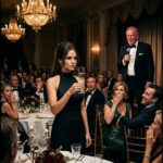 By midnight the ballroom had emptied. Flower arrangements still glowed under softened lights. Half-finished champagne glasses stood abandoned on mirrored trays. Outside, the driveway reflected the retreating taillights of the last guests.